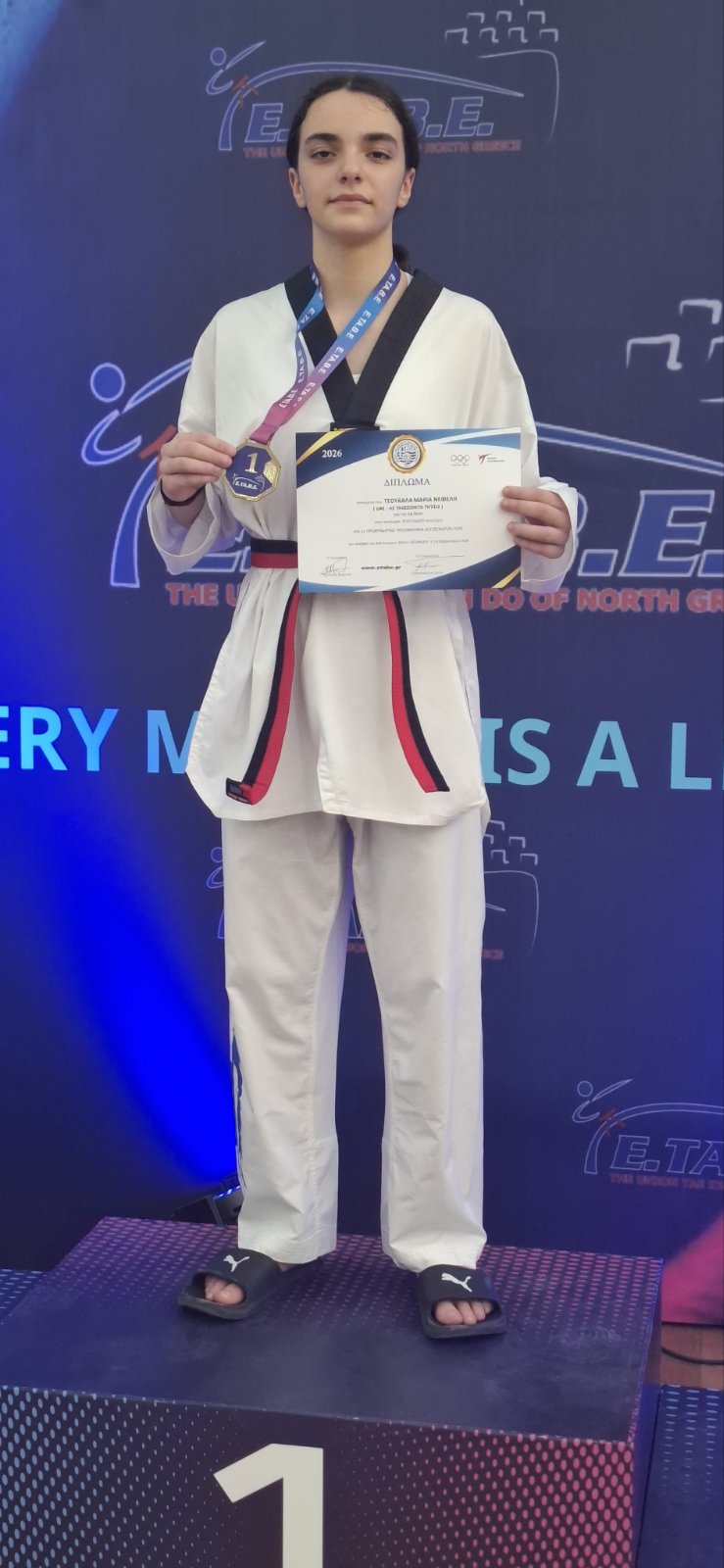 Η μαθήτριά μας Τσουκαλά Μαρία - Νεφέλη της Α' τάξης συμμετείχε στο 1ο Προκριματικό Πρωτάθλημα ΕΤΑΒΕ 2026 στο άθλημα του TAEKWONDO, που διεξήχθη στο ΔΑΚ Ευόσμου από την Παρασκευή 6 έως την Κυριακή 8 Φεβρουαρίου 2026 και κατέκτησε την 1η θέση στην κατηγορία των κορασίδων - 59 κιλά.