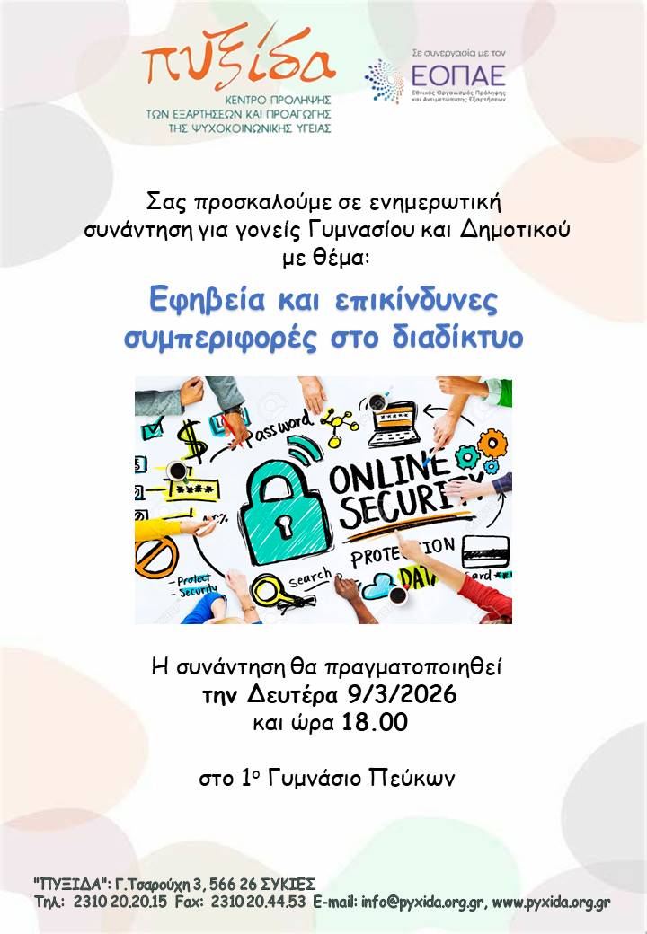 Ενημερωτική συνάντηση με θέμα «Εφηβεία και επικίνδυνες συμπεριφορές στο διαδίκτυο»